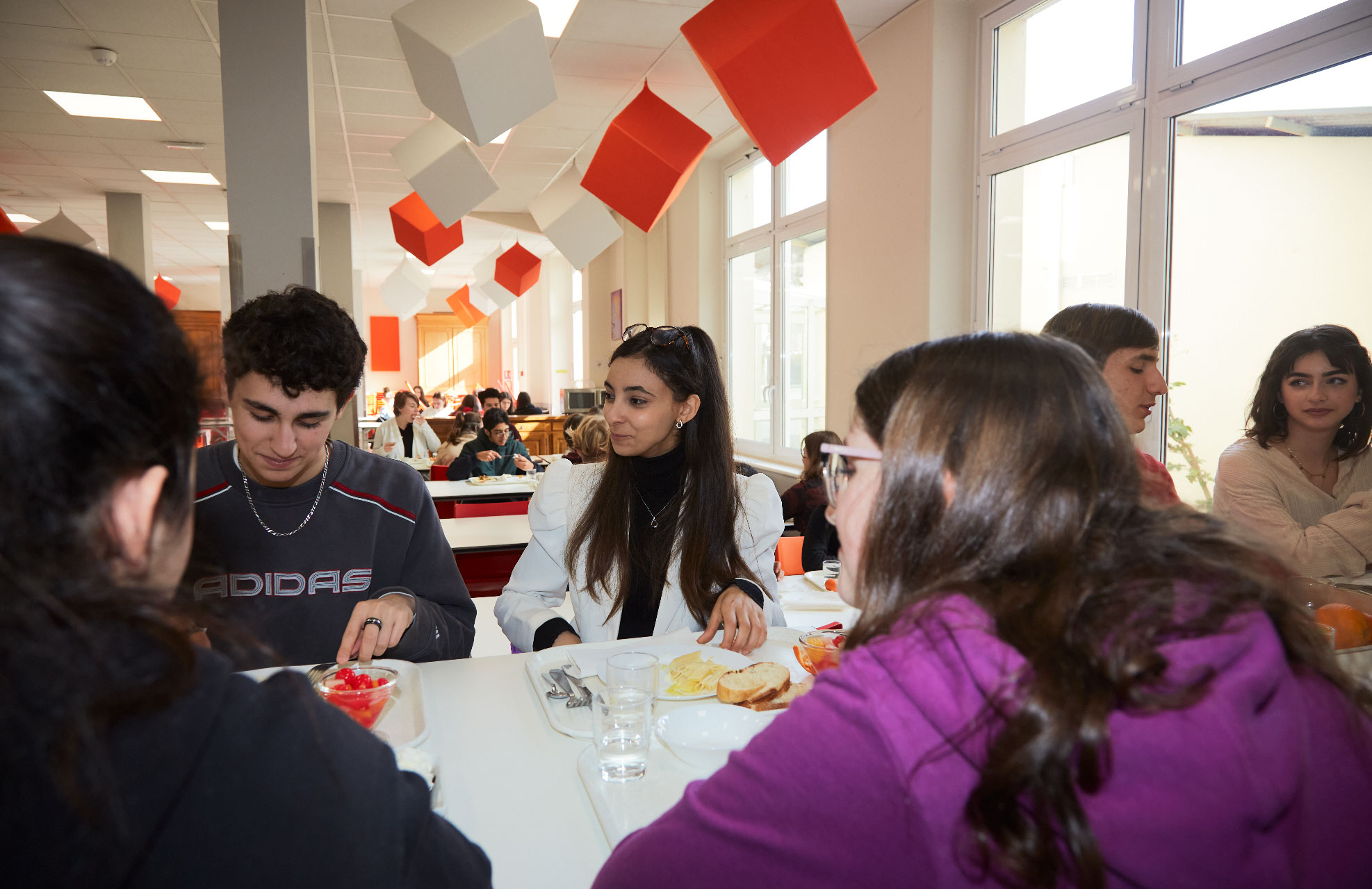 Deux chaînes de self sont à disposition des usagers pour le service et deux bars à salades sont à disposition pour permettre aux élèves et commensaux de choisir et confectionner les entrées comme ils le souhaitent. Le « plat chaud » (plusieurs choix par jour) est quant à lui servi à l’assiette par les personnels de restauration dans le respect des règles d’hygiène et de sécurité alimentaires.